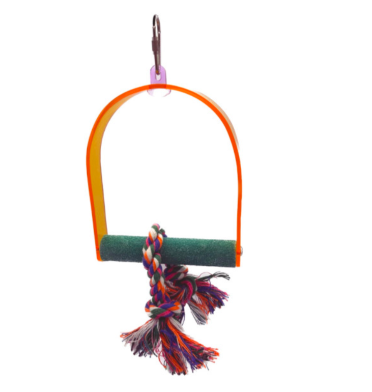 - Atractivo visualmente: El columpio acrílico con percha limauñas y cuerda incorporada es un accesorio atractivo y colorido que llamará la atención de tu loro.