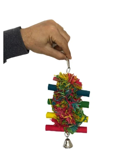 • Fiesta de colores: Este juguete para loros presenta cadenas de ratán de vivos colores que crean una auténtica fiesta visual para tu loro.