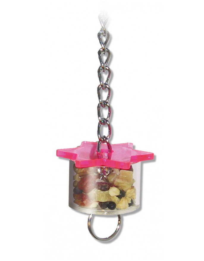• Fomenta la exploración: El juguete porta-premios colgante estimula la curiosidad y la exploración en los loros, ya que los incita a investigar y descubrir cómo obtener su premio oculto.