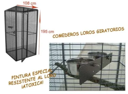 Amplio espacio para que los loros puedan volar y ejercitarse. Fácil acceso para alimentar a tus loros gracias a los