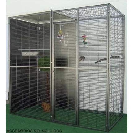 Amplio espacio para que los loros puedan volar y jugar con los dos paneles de malla para voladero. Comodidad para