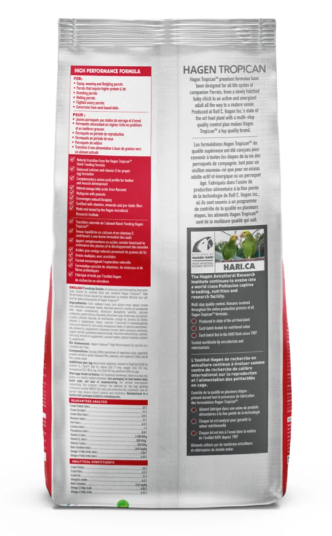 Alta Energía: La Fórmula de Alta Energía Tropican proporciona una nutrición rica en energía, ideal para loros en destete, polluelos