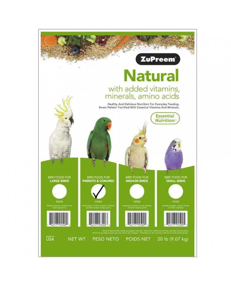 Alimentación y consejos para el acostumbramiento Al introducir un alimento nuevo, comience con una mezcla de alimento «antiguo y nuevo». Aumente gradualmente la cantidad de alimento nuevo durante un periodo de tiempo de siete a diez días. Para obtener los mejores resultados, deseche la parte sin comer y limpie el recipiente de alimentación antes de la siguiente toma. Para los métodos de conversión adicionales visite ZuPreem.com/avian-conversion.