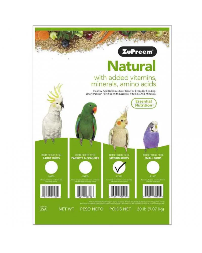 Natural con vitaminas añadidas, minerales y aminoácidos proporciona una nutrición sana y deliciosa para la alimentación diaria de loros para amazonas, guacamayos, cacatuas y otros grandes loros que prefieren este tamaño en pellet.